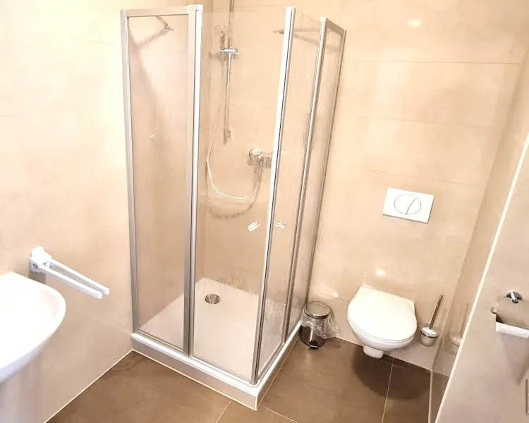 This comfortable double room offers a pleasant atmosphere and practical amenities for a relaxing stay. It features a cozy seating area, satellite TV, as well as a microwave, kettle, crockery, and cutlery.